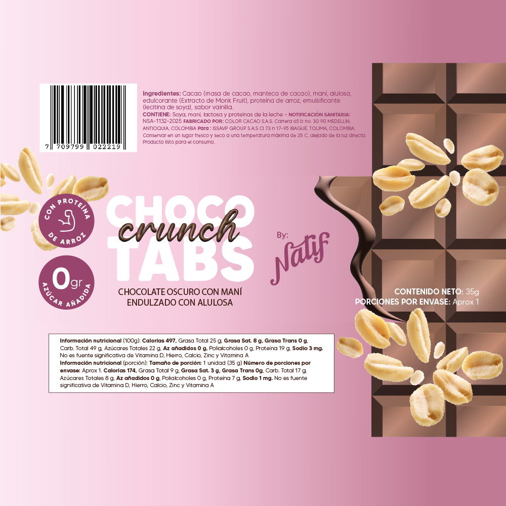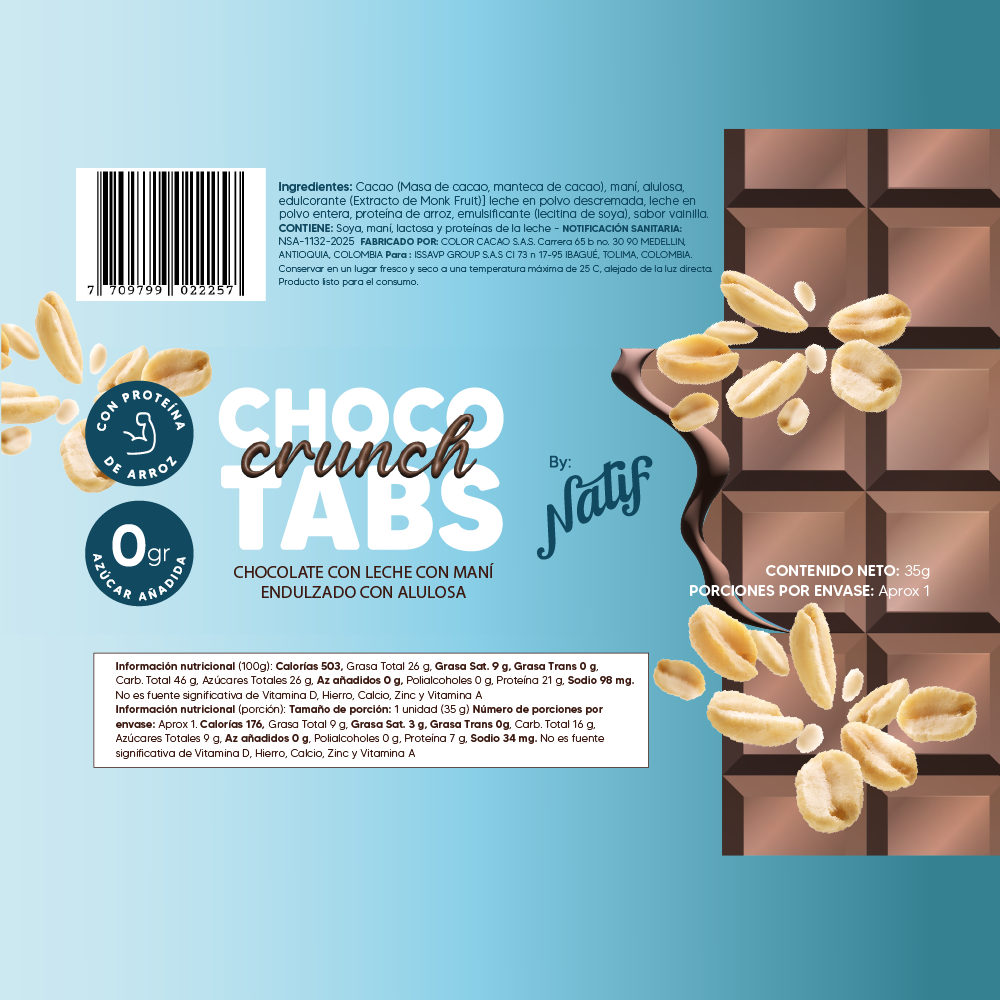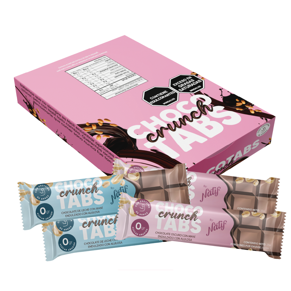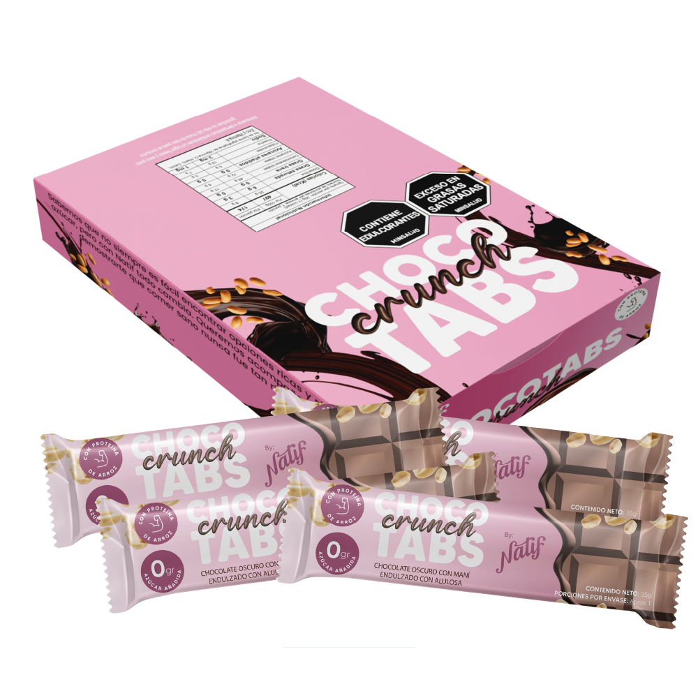 Disfruta de Chocotabs x12 unidades, chocolatina sin azúcar añadida que cuida tu salud y eleva tu energía. Con proteína de arroz para apoyar tu nutrición, y endulzada naturalmente con alulosa y monkfruit, ofrece un sabor dulce sin culpas🍫😋